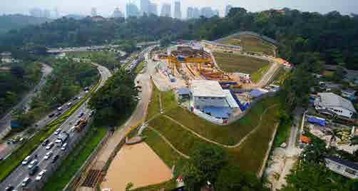 Aerial view of the Semantan Portal. Two Earth Pressure Balance Tunnel Boring Machines (EPB TBMs) were launched from this portal and tunnel towards the KL Sentral