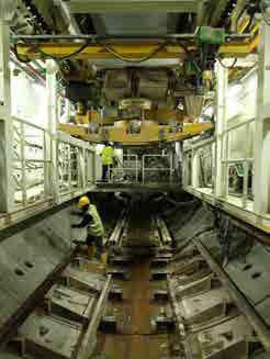 tunnel ring segments into and excavated materials out from the tunnel at the